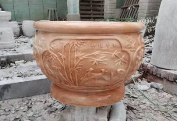 仿古庭院舊圓形蓮花浮雕缸雕塑