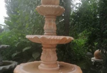 精美多層風水球噴泉石雕晚霞紅藝術裝置