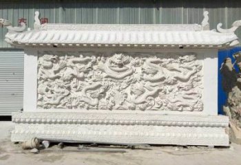 園林九龍壁漢白玉石雕影壁