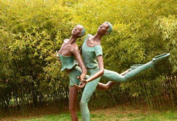 仿銅雕雙人滑冰玻璃鋼城市花園廣場人物裝飾