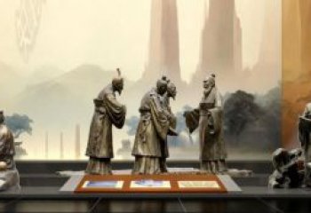 此雕塑為銅雕材質的景觀雕塑,以傳統文人生活場景為創作核心。銅雕的質感厚重且富有光澤,能細膩地刻畫人物的服飾紋理、神態以及石桌茶具的細節,讓傳統雕塑的藝術魅力得以充分展現。雕塑呈現兩位身著傳統長袍的文人,圍坐于自然質樸的石桌旁,桌上擺放著茶具,二人或手持茶杯,或指尖輕抬,似在品茶論道、交流思想。整體營造出一種悠然雅致、充滿文化韻味的氛圍,既契合傳統雕塑對人物與生活場景的生動塑造要求,又作為景觀雕塑,可融入園林、文化廣場等空間,成為傳遞傳統文化、供人觀賞品味的藝術載體,喚起人們對古代文人雅士生活與精神世界的向往與共鳴。