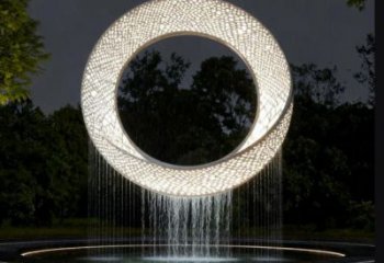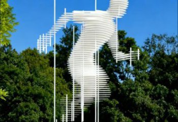 該雕塑以紅色不銹鋼打造綢帶般的靈動造型,點綴金色雀鳥,于綠意與竹林間形成視覺焦點,是兼具藝術感與文化性的景觀不銹鋼雕塑。