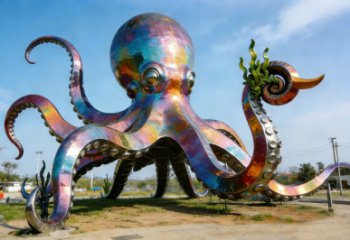 這組不銹鋼景觀雕塑以抽象手法重構草莓形態,金屬質感與孔洞肌理消解了水果的柔軟屬性,在傳統建筑與現代都市背景下,形成自然符號與工業材料的對話,成為公共空間中兼具視覺張力與文化隱喻的藝術裝置。