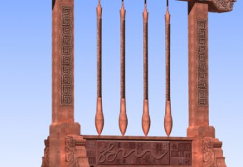 這組景觀雕塑以燈桿為載體,將傳統紋樣與現代不銹鋼材質結合。燈桿上的金色回紋與卷草紋,既承載著東方美學的厚重底蘊,又在現代城市背景下煥發出新的活力。它不僅是照明設施,更是城市文脈的視覺延伸,在白晝與黑夜中,以光影為筆,書寫著傳統與現代的對話。
