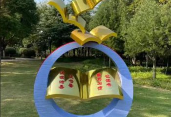 本作品為校園景觀雕塑,采用不銹鋼雕塑工藝打造,以 “飛翔” 為核心意象,構建兼具視覺張力與精神內涵的公共藝術裝置。雕塑主體為鏡面不銹鋼鍛造的抽象環形,線條剛勁流暢,如時光之環、生命之輪,寓意校園的包容與傳承;環身錯落分布的白鴿群像,姿態舒展、振翅欲飛,象征學子們掙脫束縛、追逐理想的青春姿態,也傳遞和平、自由與希望的價值追求。鏡面不銹鋼材質在不同光線與視角下折射建筑與天光,讓雕塑與校園環境自然融合,實現藝術與空間的對話?;院谏臑榈祝t色 “飛翔” 二字醒目有力,點明主題,強化視覺記憶。整體造型簡潔大氣,既符合現代校園的審美氣質,又承載著育人功能:以靈動的藝術語言激勵學子們胸懷理想、勇敢翱翔,是校園文化精神的物化表達,也是一處可供師生駐足、感悟與交流的公共精神地標。