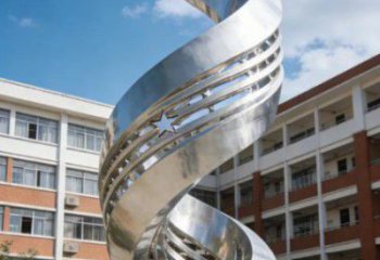雕塑以不銹鋼鍛造的流暢環形為主體,環身綴滿振翅欲飛的白鴿,基座鐫刻 “飛翔” 二字。鏡面不銹鋼材質折射天光與建筑,靈動的白鴿與剛勁的環形形成對比,既彰顯校園活力,也傳遞自由、和平與向上的精神內核,是兼具視覺美感與育人意義的公共藝術作品。